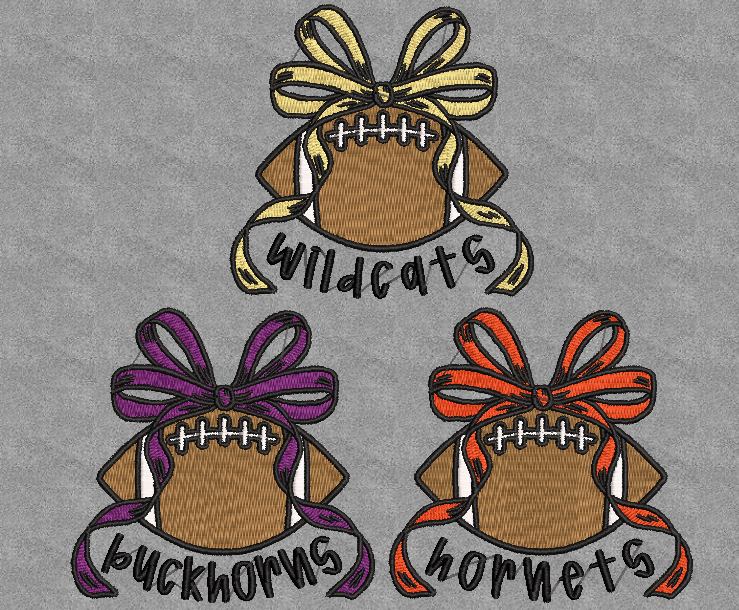 - Embroidered football design with bow accent